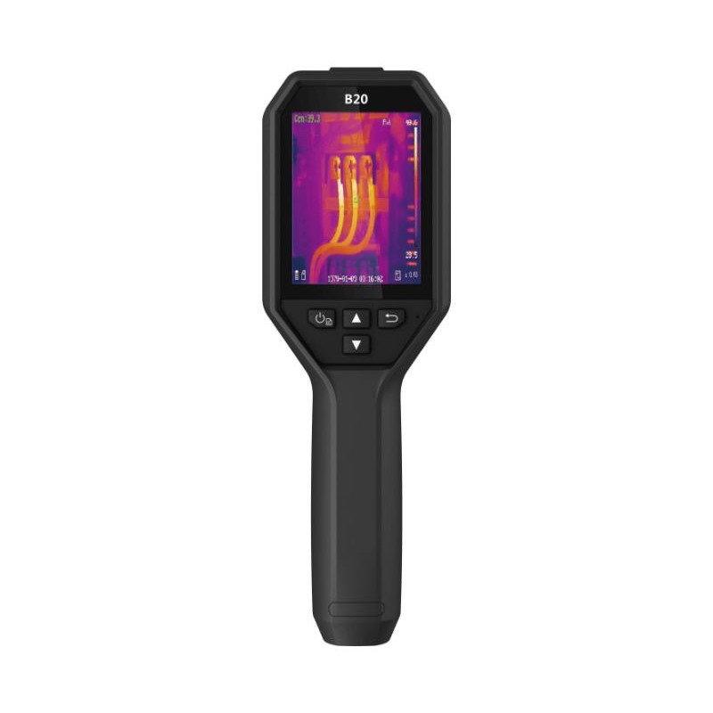 HIKMICRO B20 termokamera er et superkompakt termisk kamera, som kun veier 360 gram, og har en termisk oppløsning på hele 256×192 piksler (49.152 piksler). Hikmicro B20 termokamera lagrer termiske bilder i den innbyggede minnebrkken og har en termisk følsomhet som er mindre end 40 mK. Hikmicro B20 er velegnet for feilsøking eller dokumentasjon i forbindelse med temperaturrelaterte oppgaver. Kameraet har et temperaturområde på -20°C – 550°C, og viser det termiske bildet på en 3,2” LCD-skjerm.